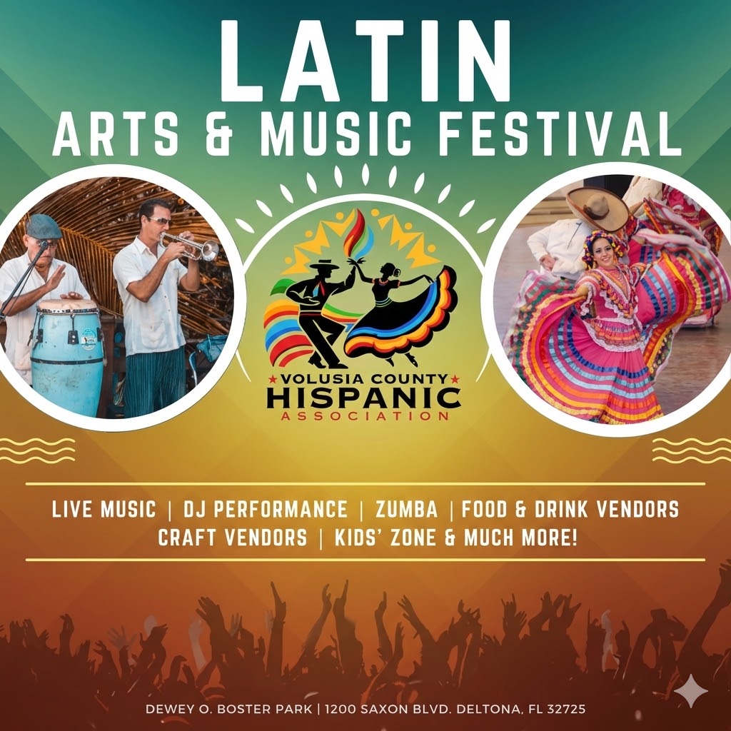Our flagship annual celebration featuring live music, authentic food, dancing, cultural performances, and family activities. The largest Hispanic cultural event in Volusia County.